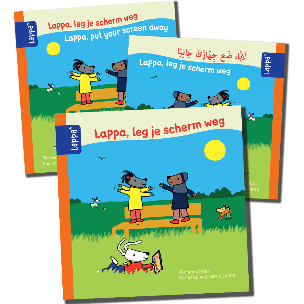 LappaBooks is gespecialiseerd in meertalige prentenboeken. Ook deze nieuwe titel verschijnt daarom in verschillende tweetalige edities. Hiermee bereiken we ook anderstalige ouders, wat direct bijdraagt aan kansengelijkheid in het schermwijs opvoeden. Want een gezonde digitale balans is belangrijk voor ieder kind, ongeacht welke taal er thuis gesproken wordt.